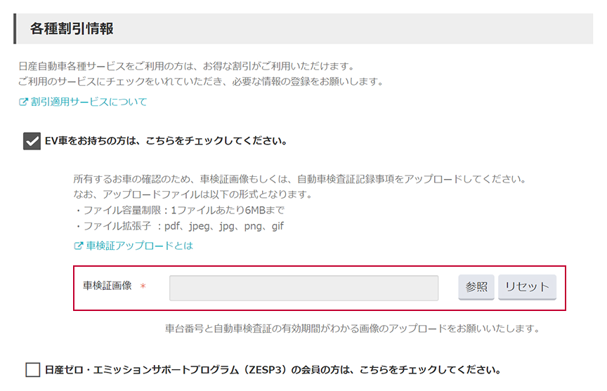 お申し込みの際、販売会社にてお持ちのEVの車検証をアップロードいただく必要があります。